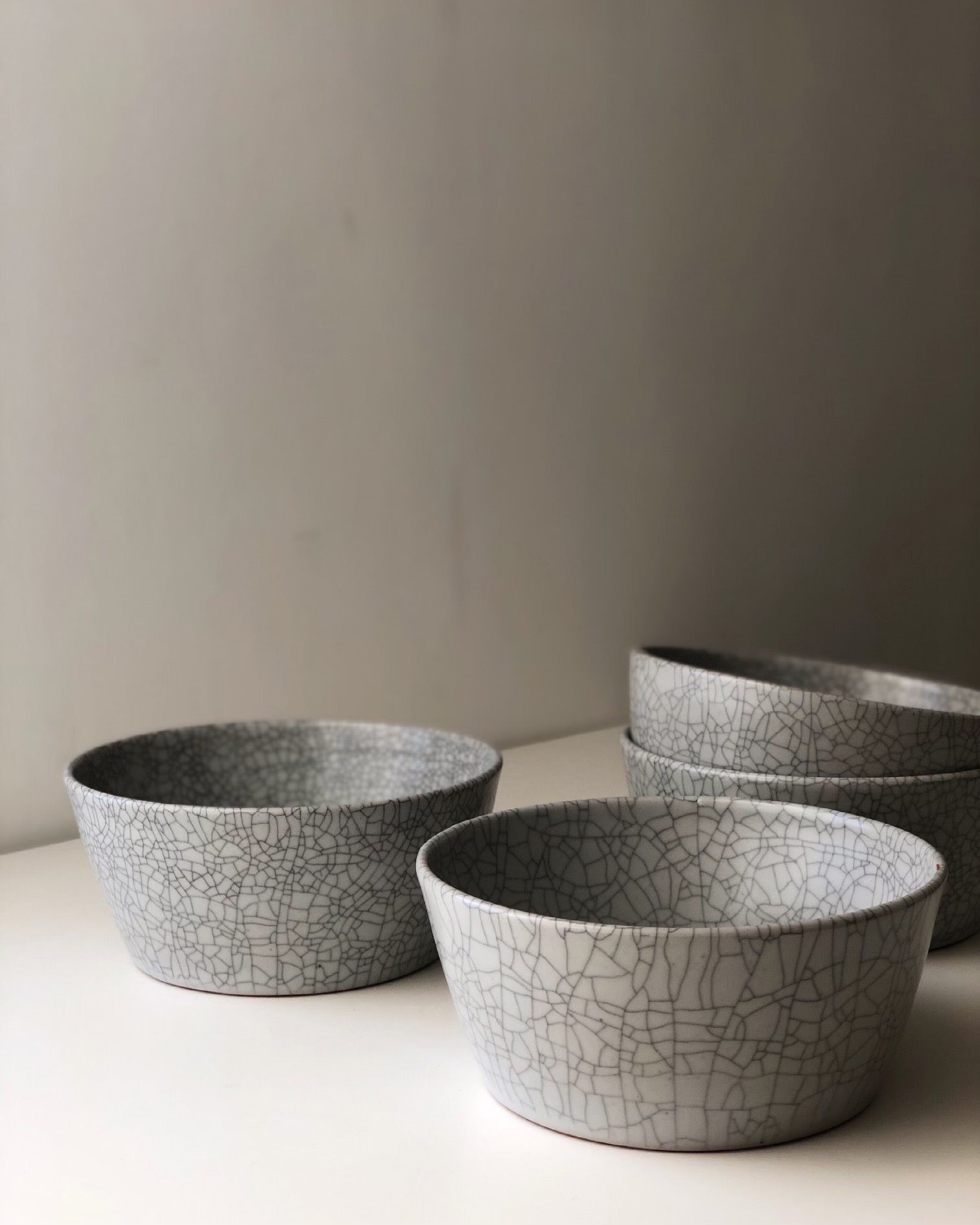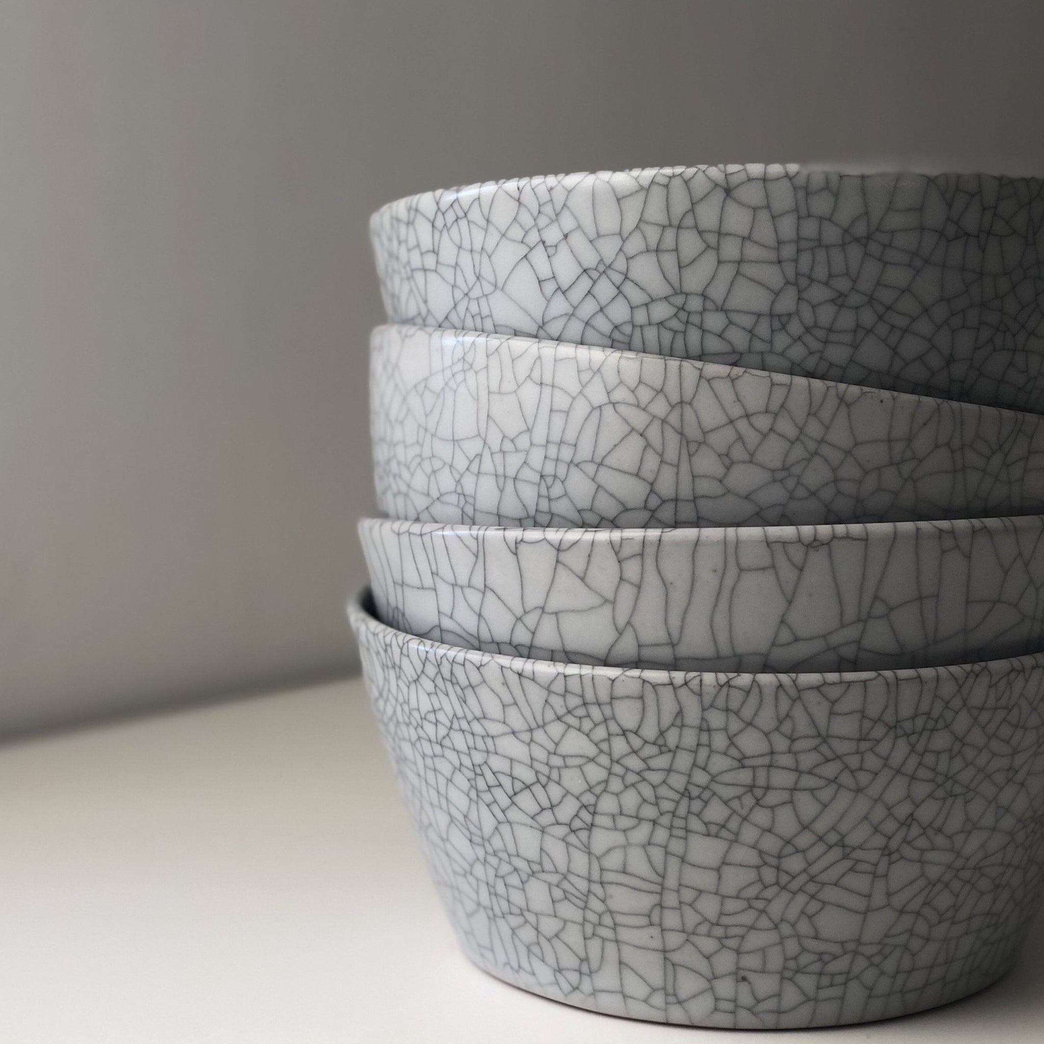 These special ordered crackle glazed bowls are intentionally designed for soups and noodles.