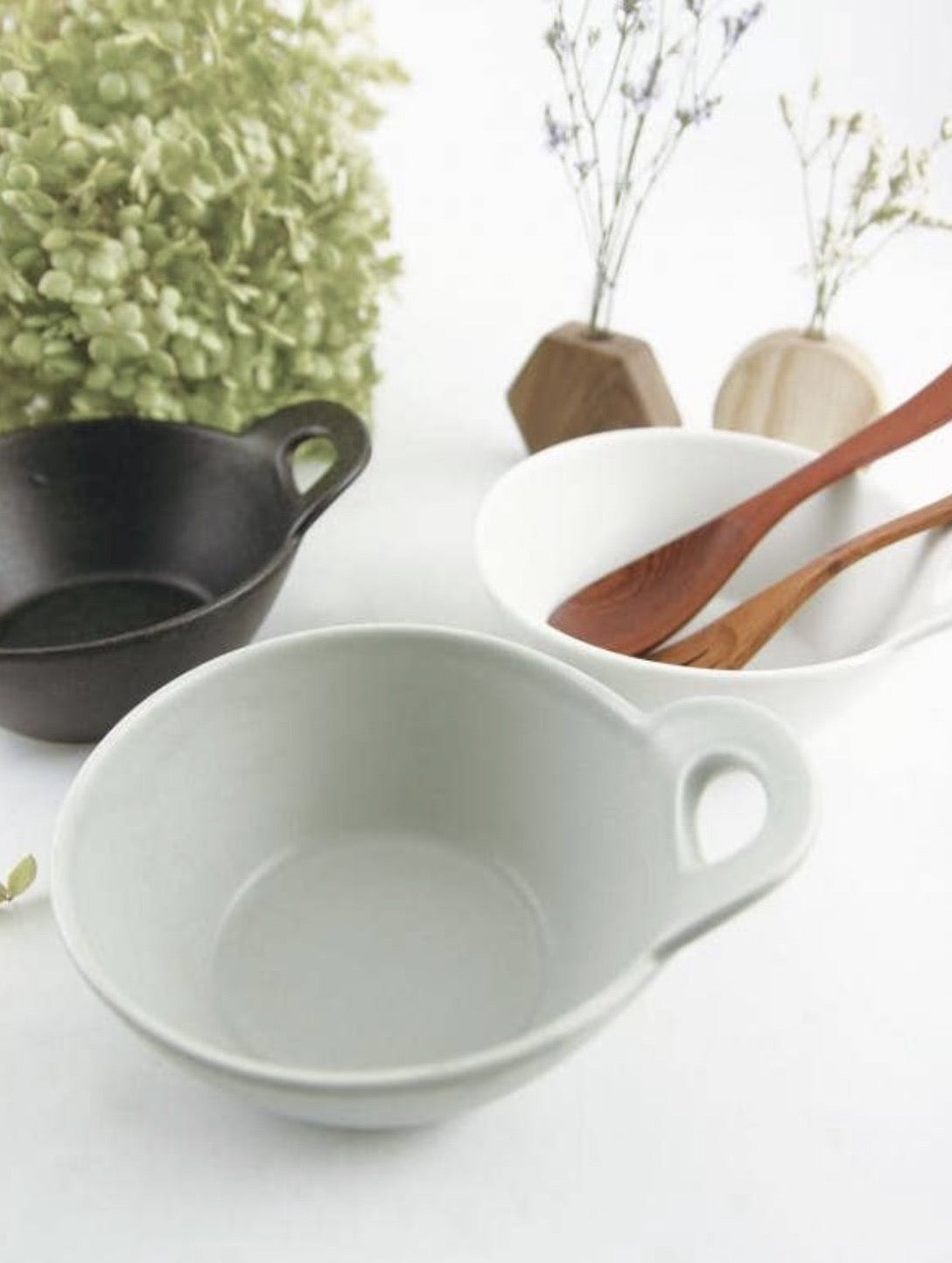 The smooth texture of this bowl makes it easy to match with your dishes. The slightly protruding handle is useful when putting in hot ingredients. The modern design also goes well with yogurt and soup.